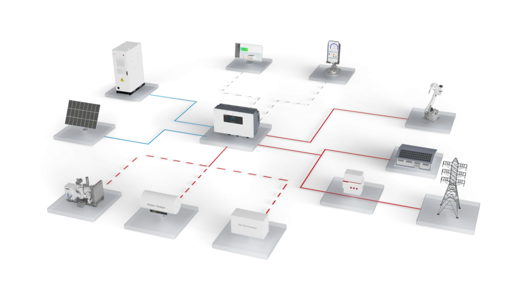 Inteligentny przepływ energii zapewnia maksymalną autogenerację, strategiczne wykorzystanie sieci oraz nieprzerwaną ciągłość działania dla kluczowych operacji biznesowych.